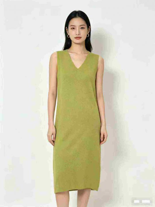 200件左右2026夏季新款法式温柔风约高级感牛油果绿针织无袖中长款背心裙连衣裙,品质好高弹力,尺码S-XL,独立包装!福利秒杀价8.5 不分货