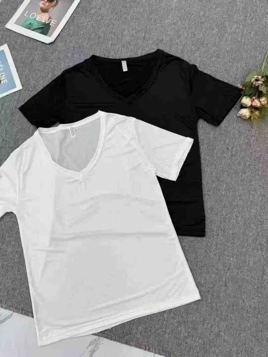 4.5清673夏季薄款男士速干冰丝短袖打底衫纯色圆V领夏...
