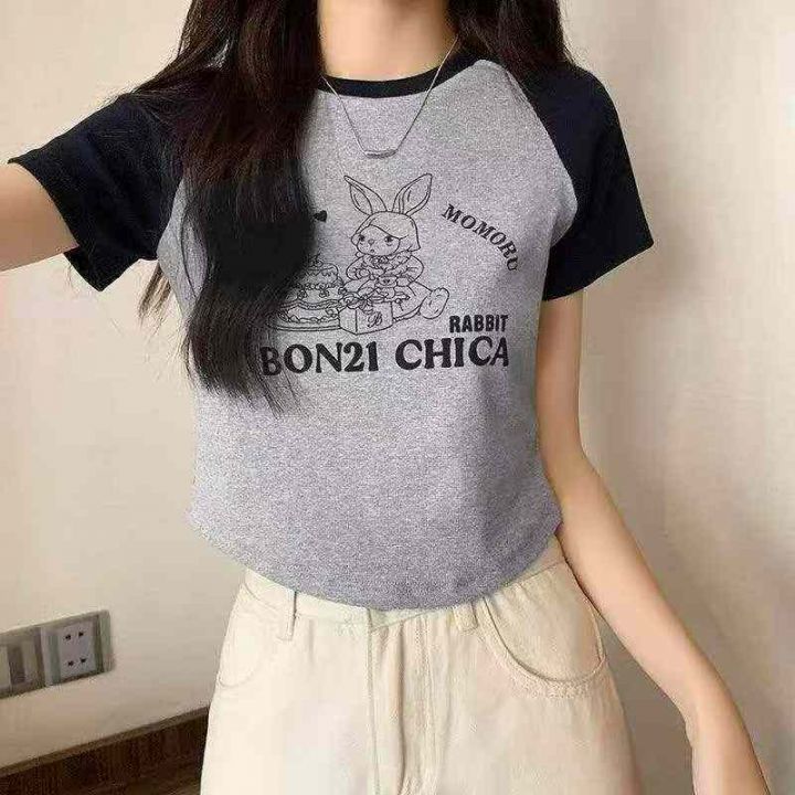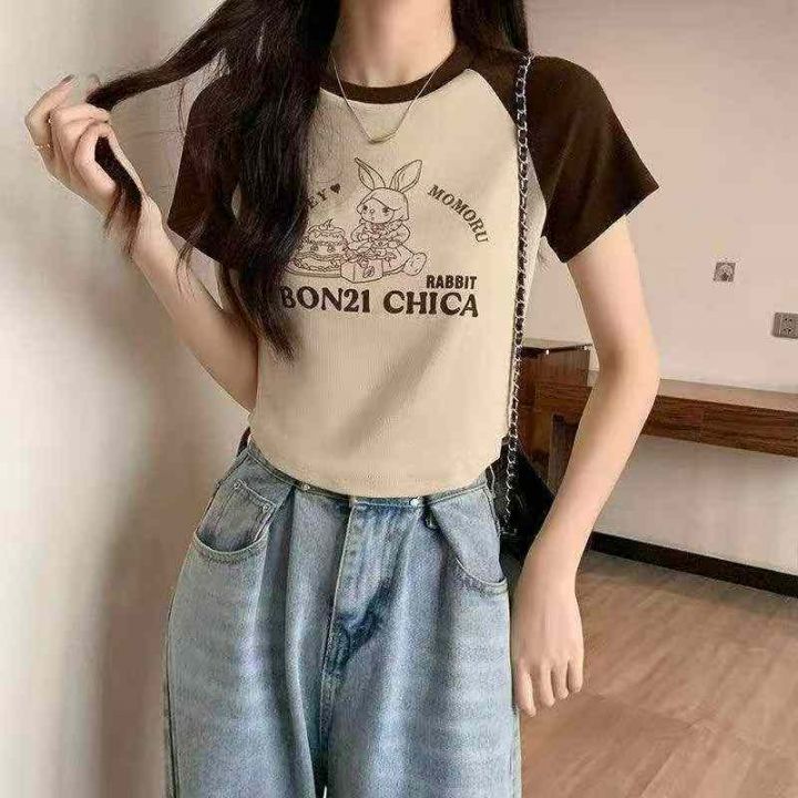 夏季新款美式撞色插肩复古卡通水印花针织短袖T桖,独立包装,均码面料柔软舒适弹力大,140件,全清5.9元超低价秒杀!