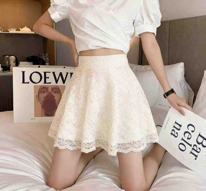 夏季新款女装防走光高腰百搭A字网纱蕾丝半身蓬蓬裙,...