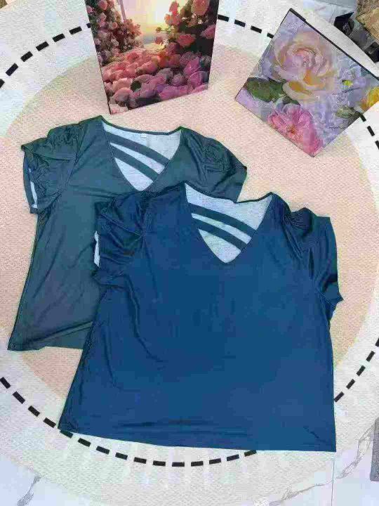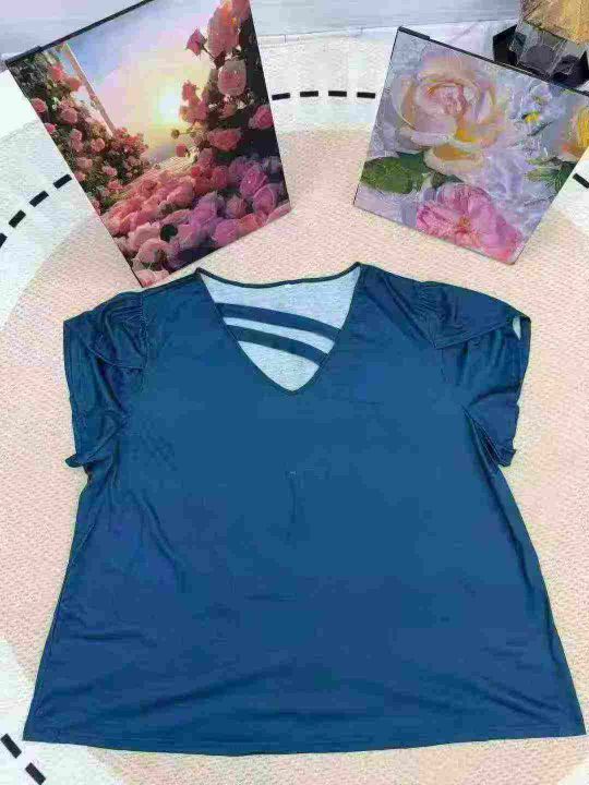 450件欧美外贸原单女T恤V领花瓣袖上衣!码数:1XL~7XL!独立包装!货品干净!