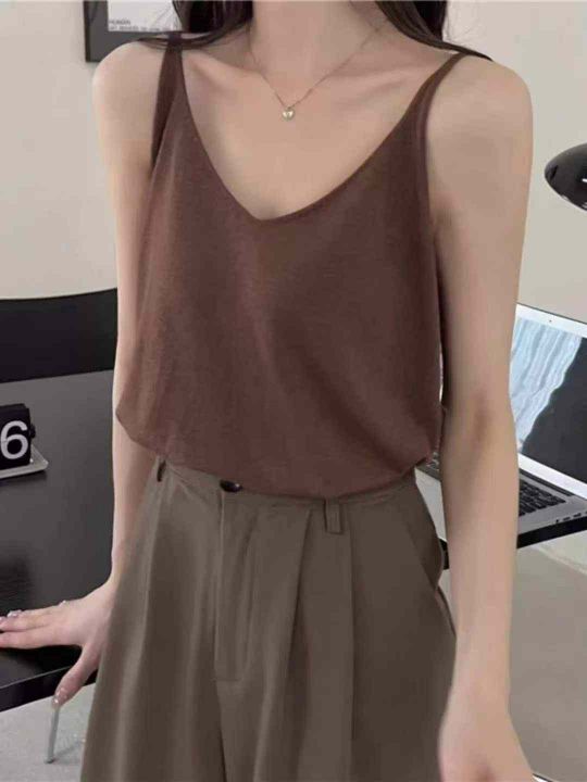 夏季新款净版简约宽松百搭冰丝针织吊带背心,独立包装...