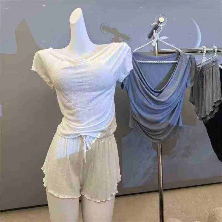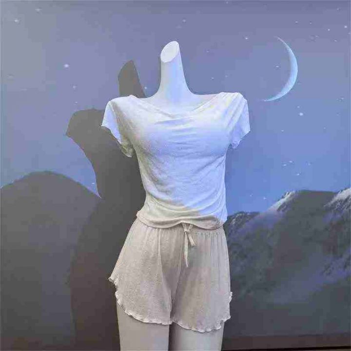 4000套,睡衣女短袖短裤带胸垫吸湿排汗荡领小胸聚拢女人性感风可外穿,独立包装\'码数1.2.3相当于M L XL,分货➕1,货号001#30