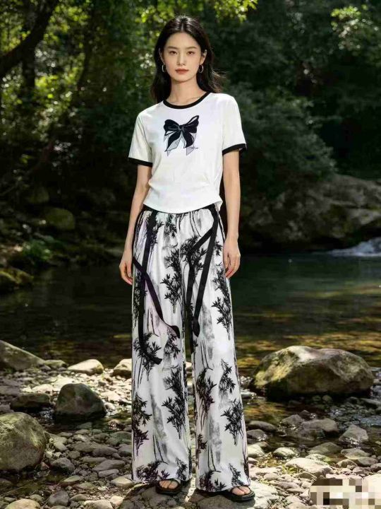 时尚洋气水墨画国风简约休闲阔腿女士套装.单款单色4...