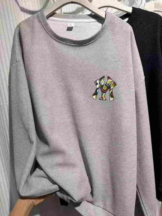 5.5清457件国潮华夫格圆领男士潮流休闲长袖春秋宽松显...