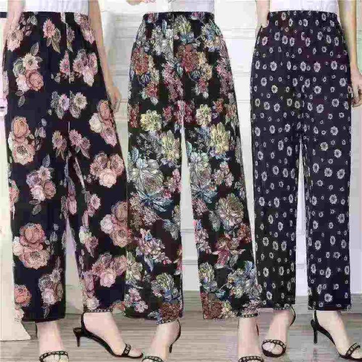 10000条\'妈妈冰丝长裤女宽松加大加肥休闲奶奶花裤子中老年阔腿裤,多色,均码,100/200起+0.5