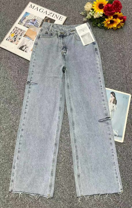 春夏季新款网红复古破洞设计款牛仔毛边直筒裤,独立包装带腰卡,码数XS-XL码,90件左右,全清8.9元超低价秒杀!