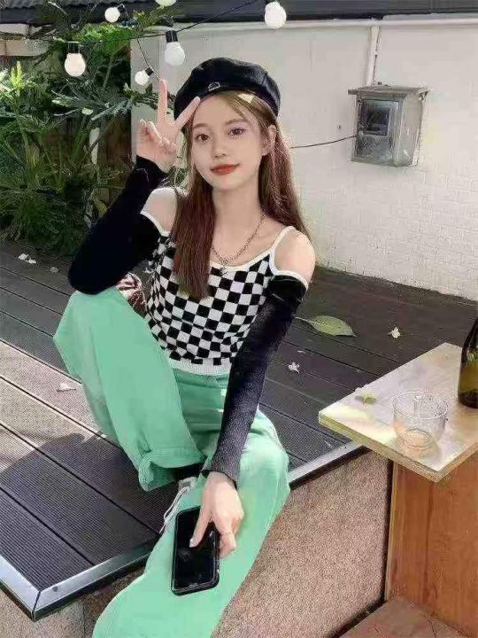 800件 春秋时尚格子露肩提花性感长袖上衣打底衫女,整款两色,高弹力,独...