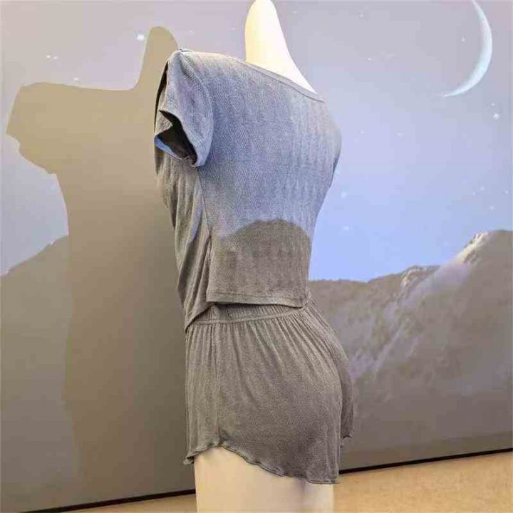 4000套,睡衣女短袖短裤带胸垫吸湿排汗荡领小胸聚拢女人性感风可外穿,独立包装\'码数1.2.3相当于M L XL,分货➕1,货号001#30