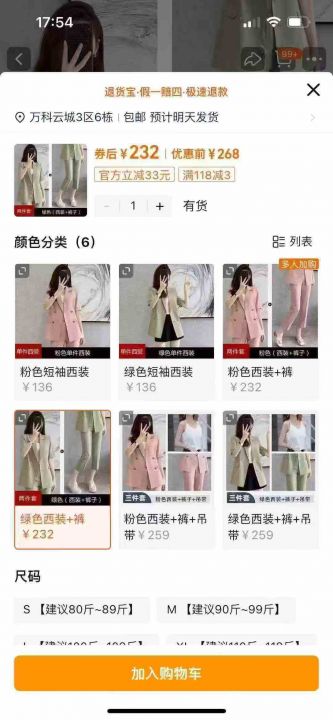 天猫在售2025休闲气质西装套装288套,码数S-4XL,单款2色,全清28.8 分货➕1
