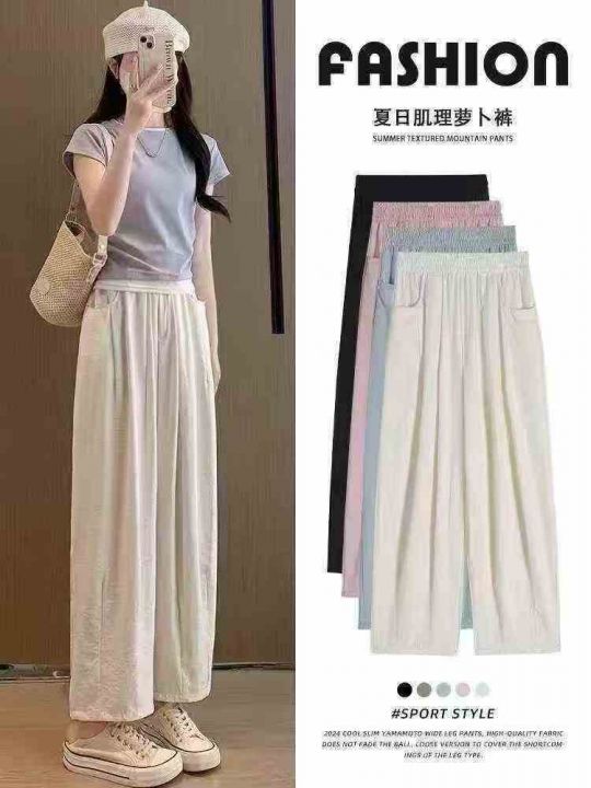 大码垂感山本裤女夏薄款慵懒夏日醋酸阔腿休闲九分速干...