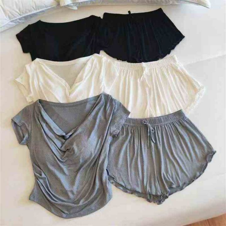 4000套,睡衣女短袖短裤带胸垫吸湿排汗荡领小胸聚拢女人性感风可外穿,独立包装\'码数1.2.3相当于M L XL,分货➕1,货号001#30