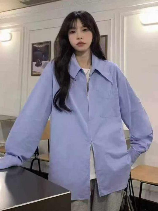 大码法式设计感双拉链POLO领长短袖衬衫女春夏薄款衬衣上衣外套 独立包装 码...