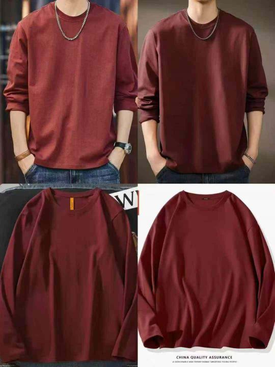 男女同款纯色长袖T恤☕️600件全清5.8元分货6.8元。码数Xs到3xl,独立包装,单款单色 ,本命年酒红色纯色长袖T恤男春秋新款圆领纯棉宽松长袖打底衫男