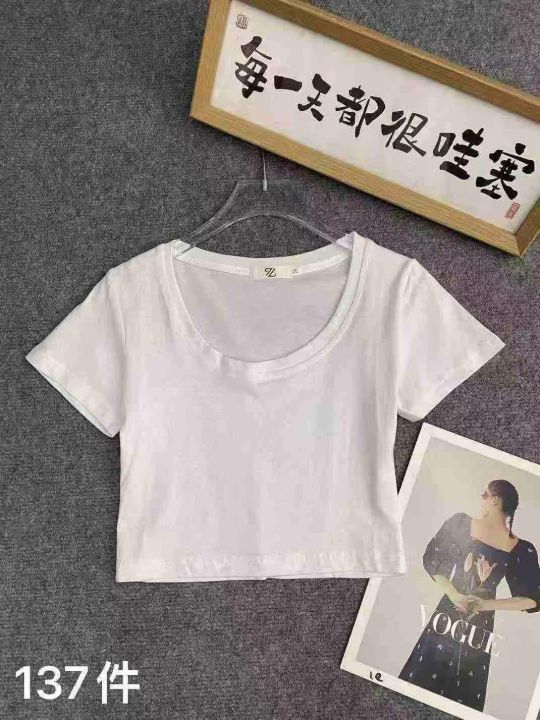 5000多件女款法式方领高腰露脐短T,尺码:XS~XL,面料软糯高弹力,全清价...