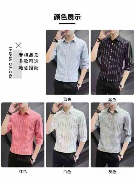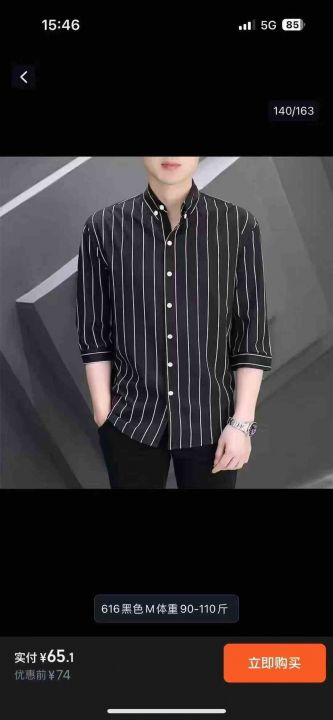高端男士休闲中袖衬衫夏季冰丝雪纺韩版潮流修身大条纹衬衣,整款多色,独立包装,货品干净,M-5XL码,750件左右,7.5清,分货加1