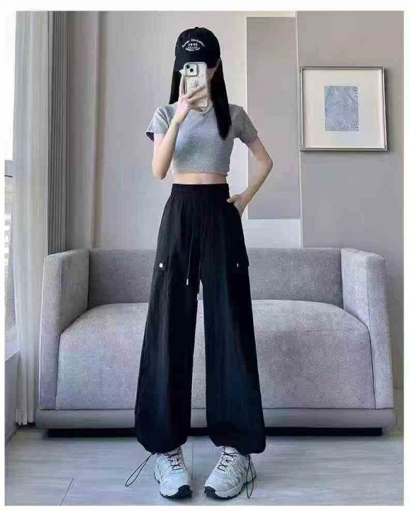 女工装裤夏季薄款宽松高腰直筒休闲美式运动时尚女伸缩...