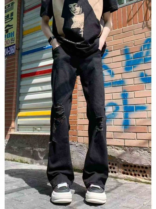 破洞牛仔裤男士夏季薄款美式高街复古潮牌宽松百搭直筒...