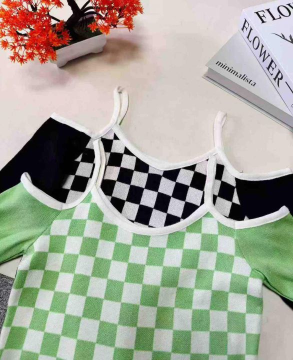 800件 春秋时尚格子露肩提花性感长袖上衣打底衫女,整款两色,高弹力,独立包装 4.8 清