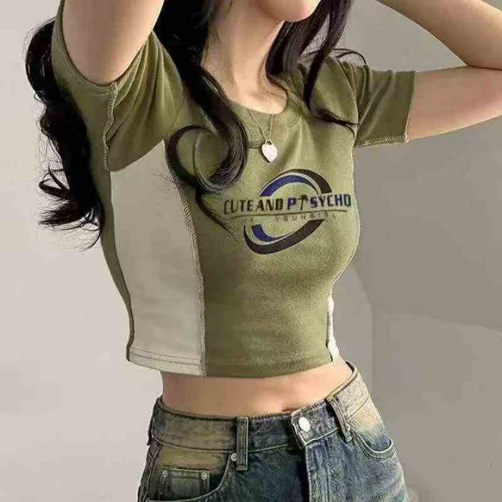 时尚洋气修身显瘦短款辣妹印花短袖T恤,图片款,品质好,工厂原单,5件一包...
