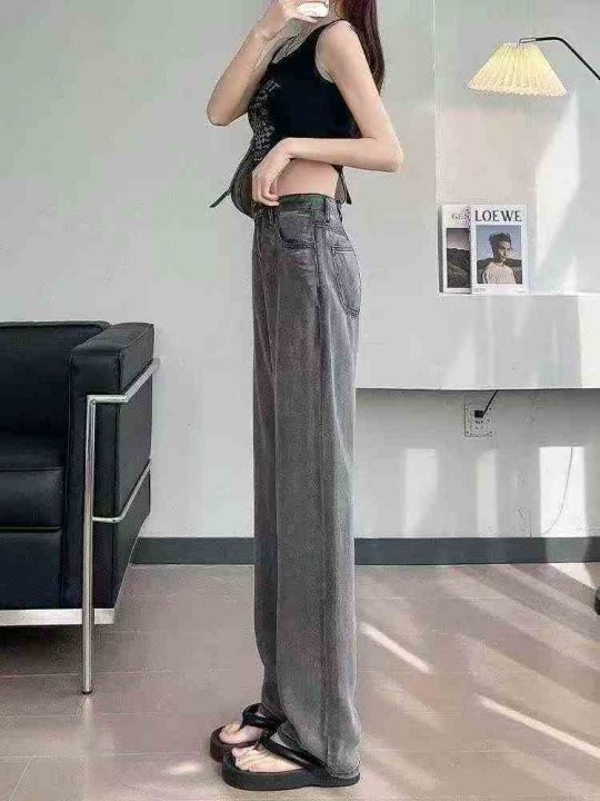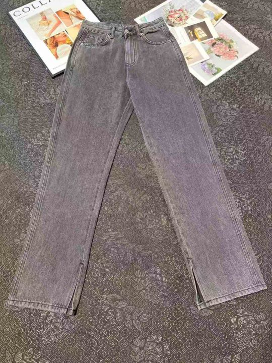 直筒阔腿黑灰色时尚宽松显瘦高腰开叉牛仔长裤女 173...