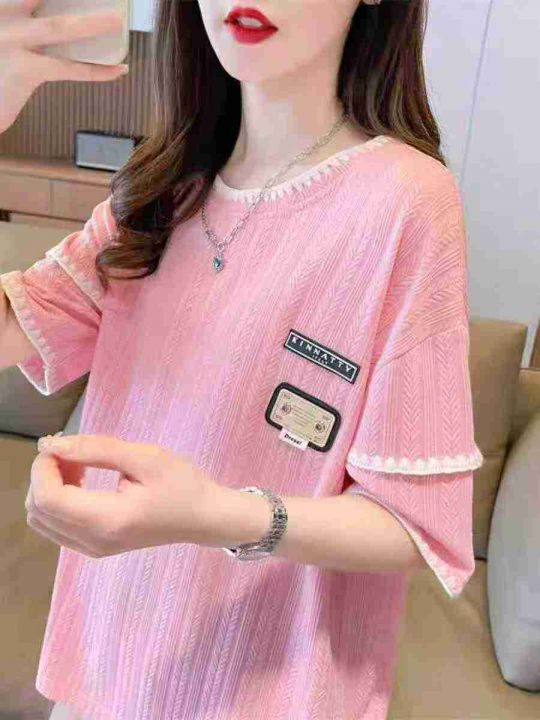 ☕️甜美粉色多巴胺穿搭短袖t恤女夏季新款宽松洋气漂亮花边半袖上衣492件全...
