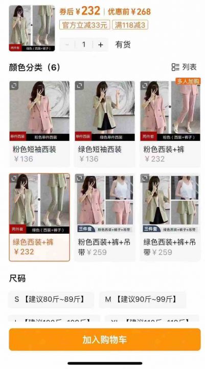 淘宝在售2025款西装外套303件,码数S-3XL,单款单色,全清15.8 分货➕1