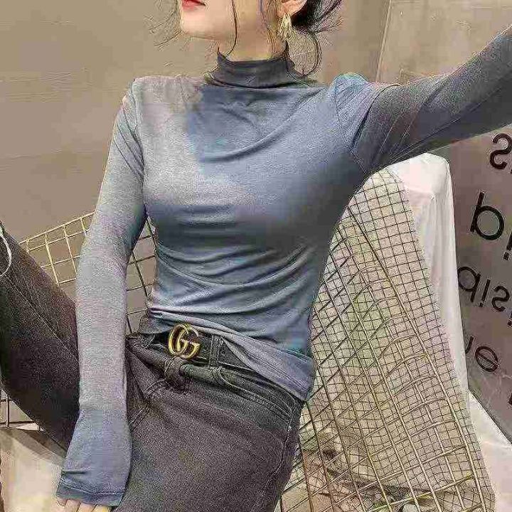 ☕️高弹力面膜打底衫女长袖t恤半高领春秋冬新内搭洋...
