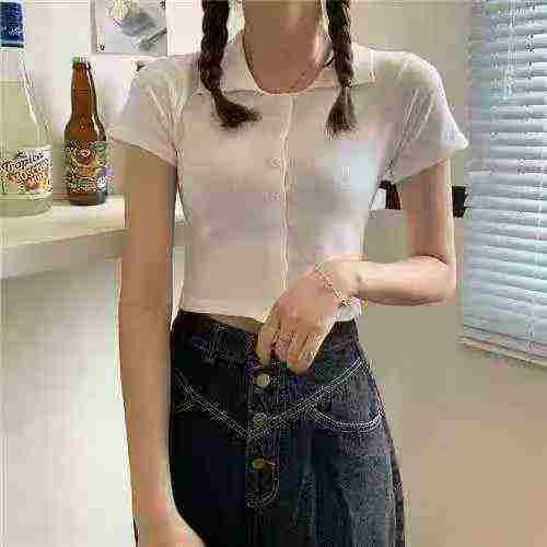 棉质辣妹短袖55件5.9,面料舒适透气,有弹力,POLO领...