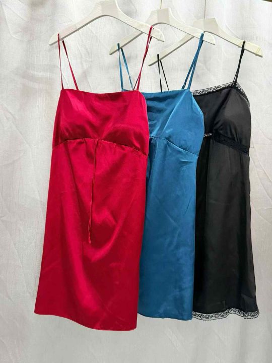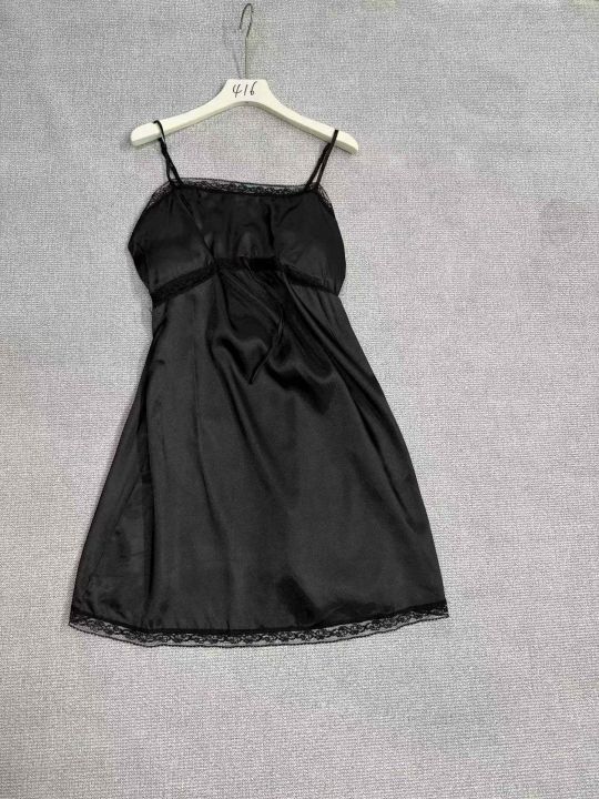 法式浪漫少女感睡裙吊带冰丝绸睡衣女款夏季2026新款带胸垫家居服,独立包装带胸垫,蓝➕黑多,码数S—2XL.数量598件,白菜价¥6.8