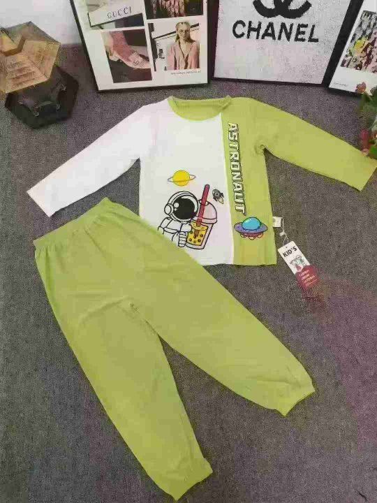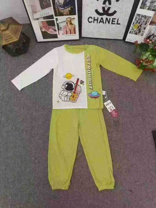 品牌童装长袖家居服套装,数量200套左右,尺码90--150,大码多,整款单色两个品牌,独立包装带吊牌,货品整洁质佳