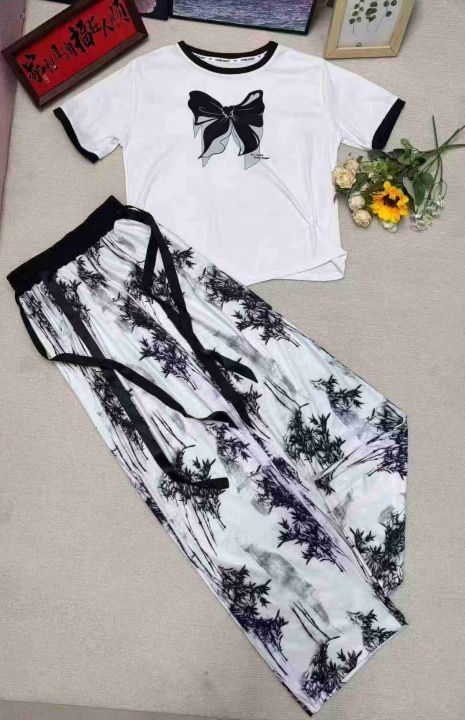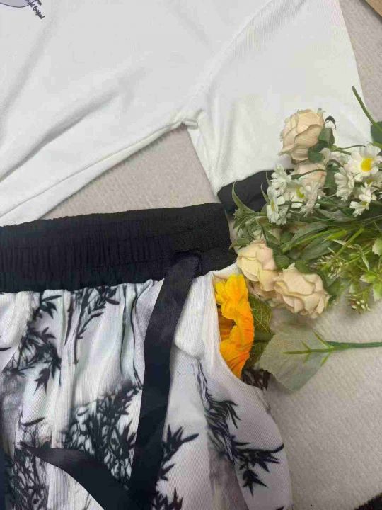 时尚洋气水墨画国风简约休闲阔腿女士套装.单款单色4个码独立包装508套全清9.5分货加一