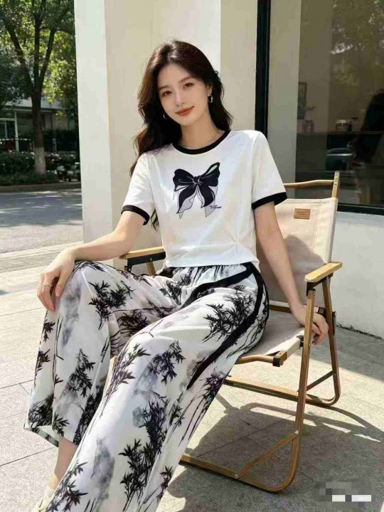 时尚洋气水墨画国风简约休闲阔腿女士套装.单款单色4...