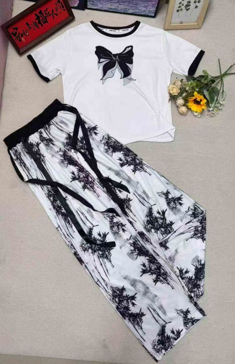时尚洋气水墨画国风简约休闲阔腿女士套装.单款单色4个码独立包装508套全清9.5分货加一