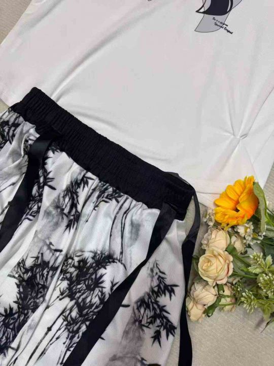 时尚洋气水墨画国风简约休闲阔腿女士套装.单款单色4个码独立包装508套全清9.5分货加一
