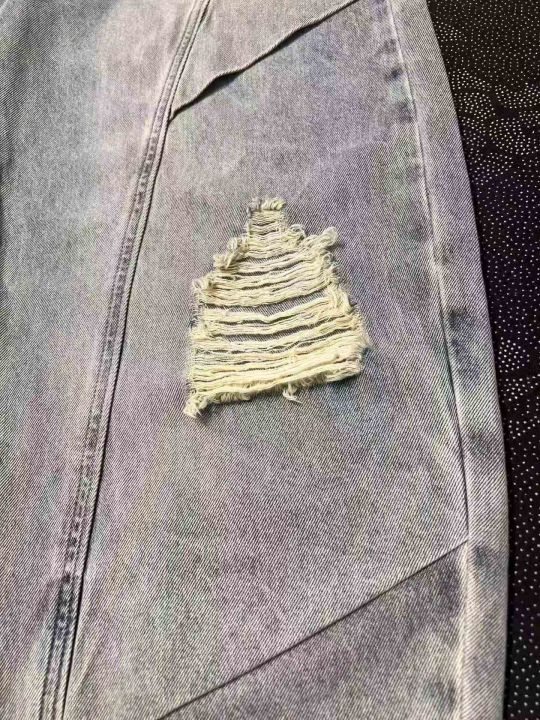 男女同款破洞弯刀阔腿牛仔裤 107件,全清14.8元,码数:S/M/L,正品独立包装,货品干净,美式水洗破洞弯刀牛仔裤男女同款夏季设计感休闲裤痞帅显高显瘦长裤子
