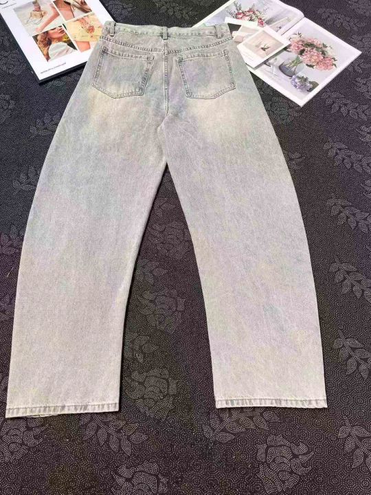 男女同款破洞弯刀阔腿牛仔裤 107件,全清14.8元,码数...