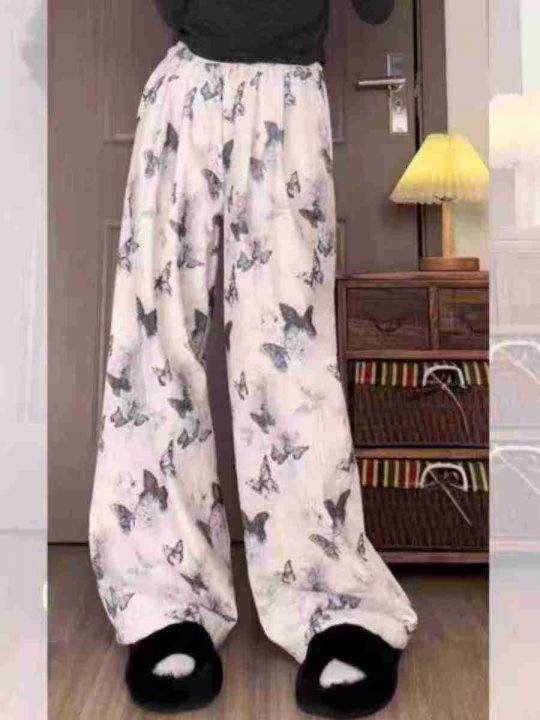 ☕️水墨蝴蝶国风阔腿裤女夏季休闲新中式扎染冰丝裤36...