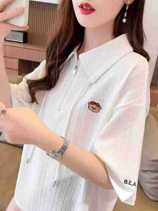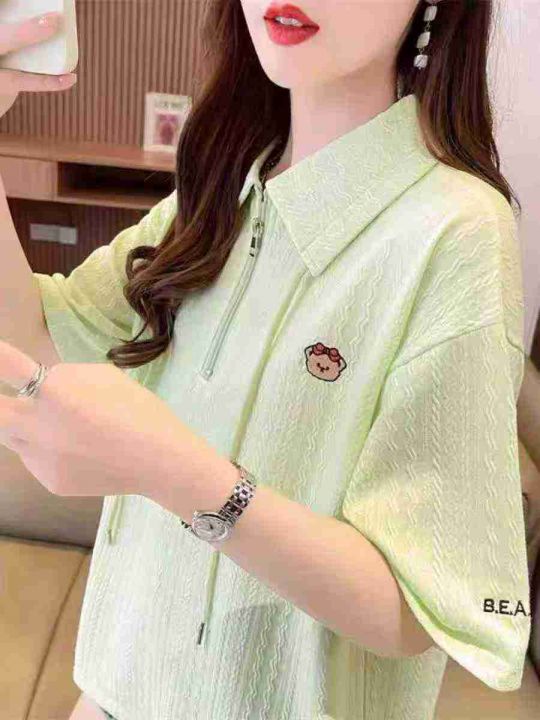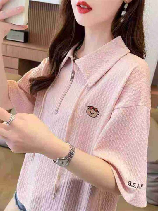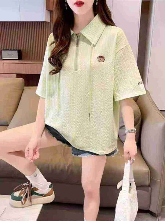 ☕️polo领短袖t恤女新款夏季韩版宽松大码设计感小众...