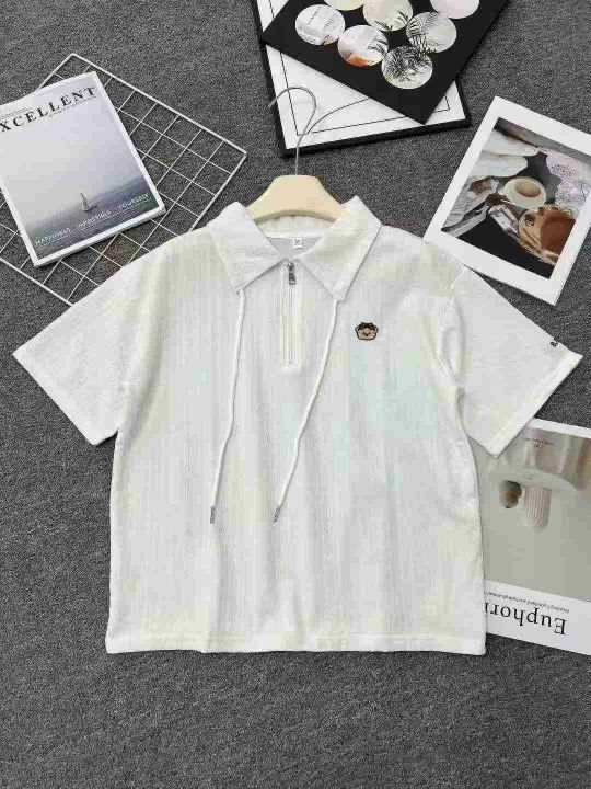 ☕️polo领短袖t恤女新款夏季韩版宽松大码设计感小众短袖上衣301件全清11.8元 分货12.8元,码数S到XXL,单款3色,独立包装。
