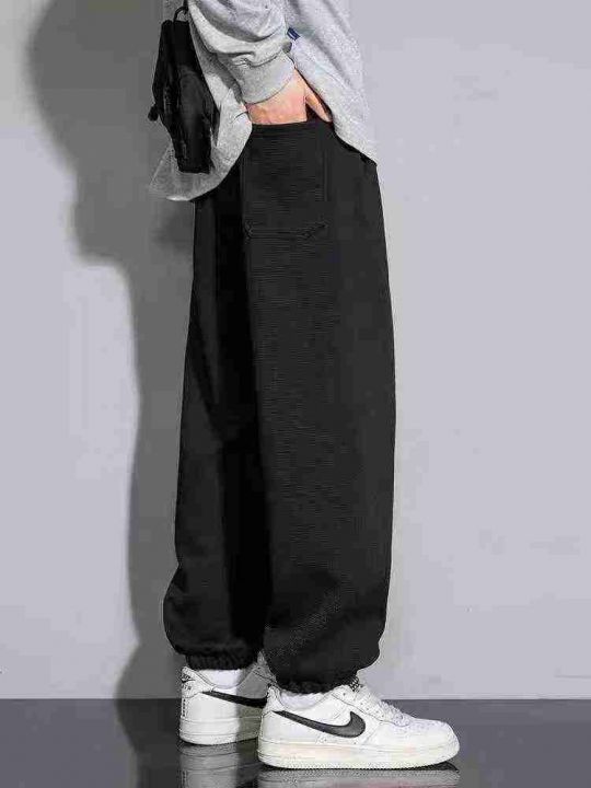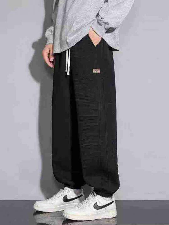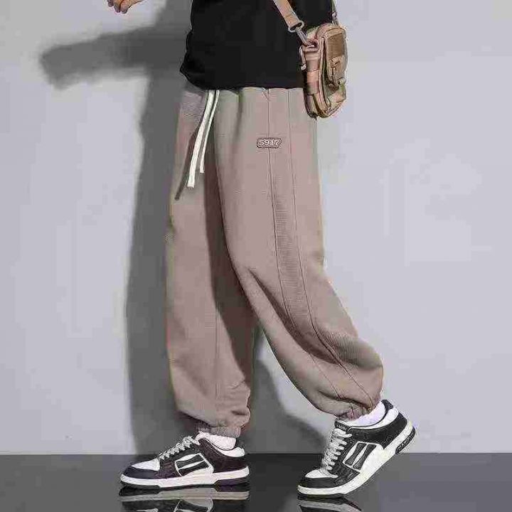 ☕️美式纯色束脚卫裤男春秋季休闲裤裤华夫格不加绒卫...