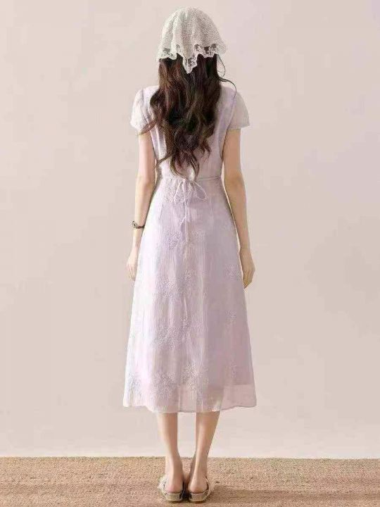 4100件新款夏季收腰修身长款连衣裙,工艺绣花,单款单色,独立包装,码数M-L