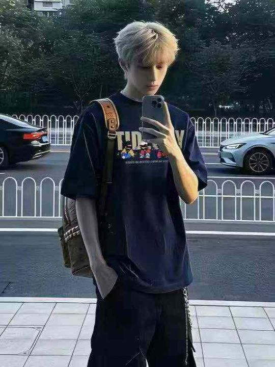 电商仓回收2000件美式复古街头潮流240g重磅印花纯棉短袖T恤,码数S-4XL。后领包边到肩,版型宽松硬挺。高档拉链袋独立包装,分货➕1