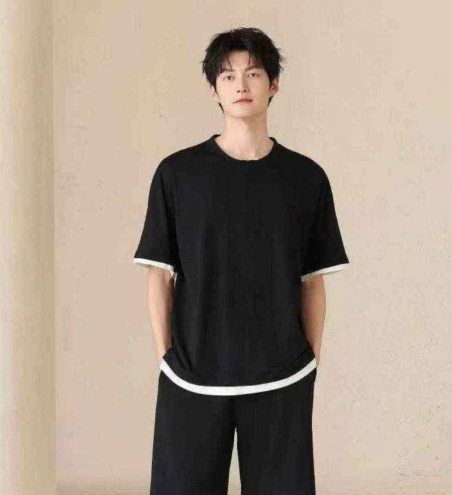 5.8清电商仓回收285件华夫格帅气潮男夏季痞帅T恤上衣...
