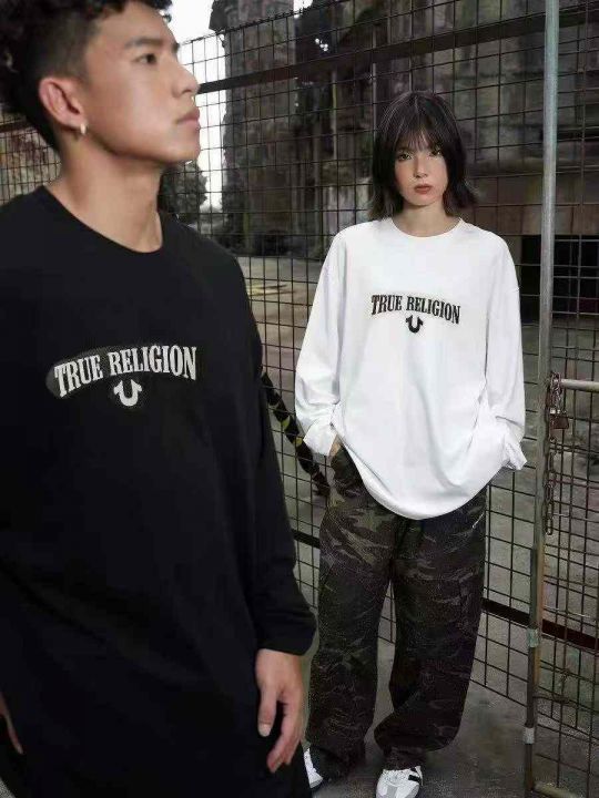 3.9清电商仓回收1800件复古字母美式潮流斜纹男女同款长袖T恤,码数M-3XL。...