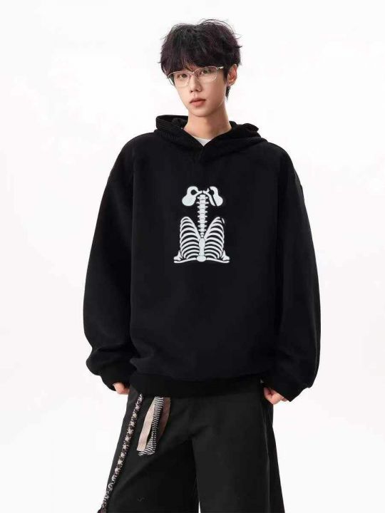 全清5.5,连帽卫衣男秋冬加绒美式小众大码宽松版潮男百搭设计感外套,码数S...