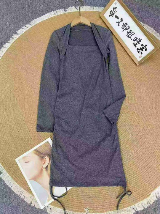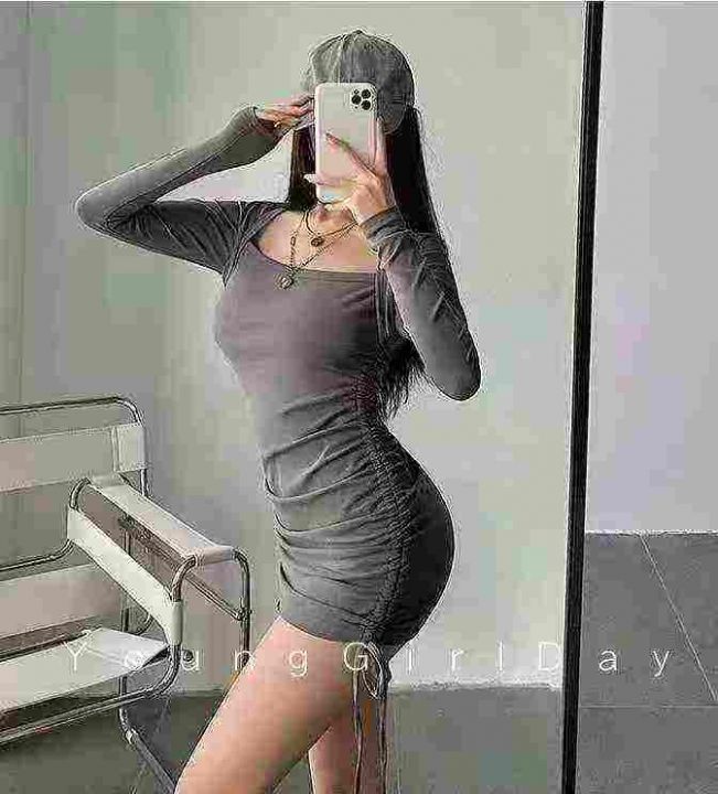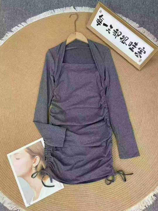 性感修身包肩长袖连衣裙60件7.9,露锁骨,抽绳褶皱,...