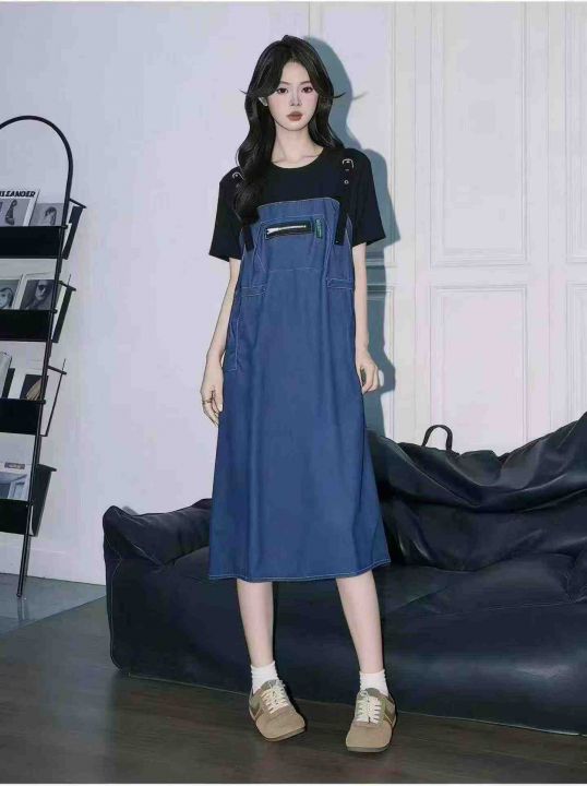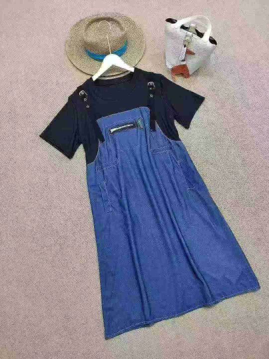 [月亮]:休闲假两件吊带短袖宽松连衣裙