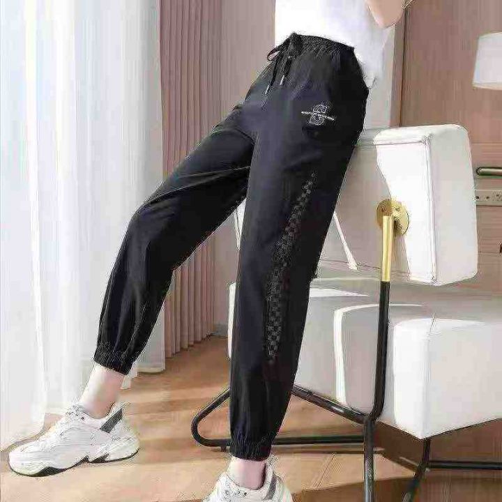 [月亮]:网纱镂空拼接/束脚抽绳休闲裤