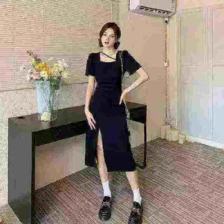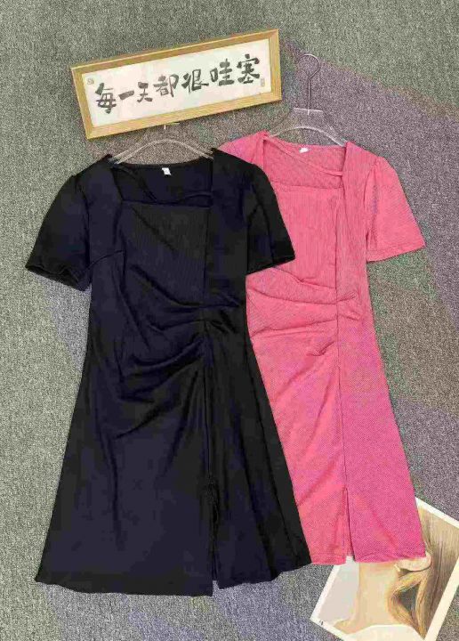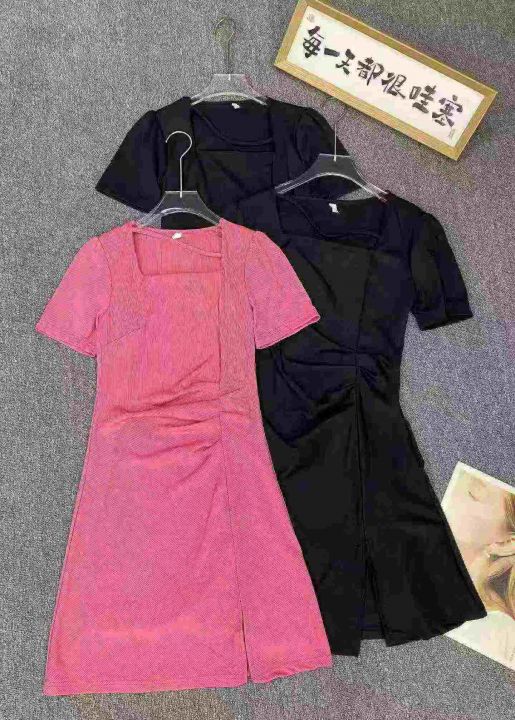 纯欲设计感方领斜条连衣裙375件8.5,面料舒适有弹力,...